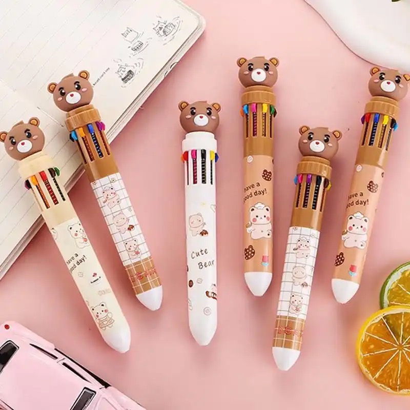 Caneta 10 cores ursinho fofo.